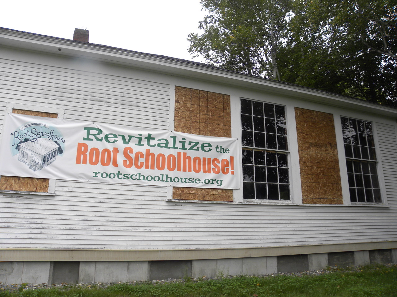 Root Schoolhouse is located at 987 Union Village Road, north of the intersection of Union Village Road and Goodrich Four Corners Road in Norwich, VT.
