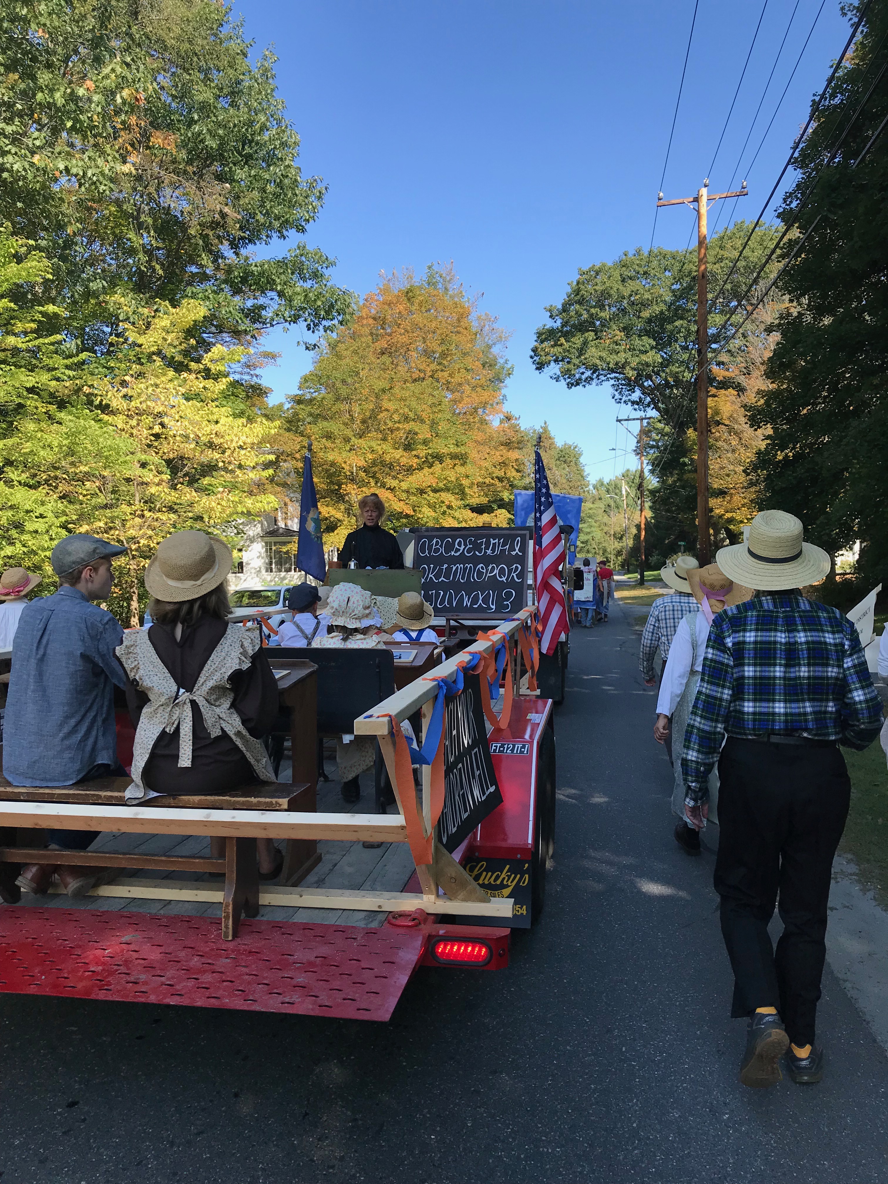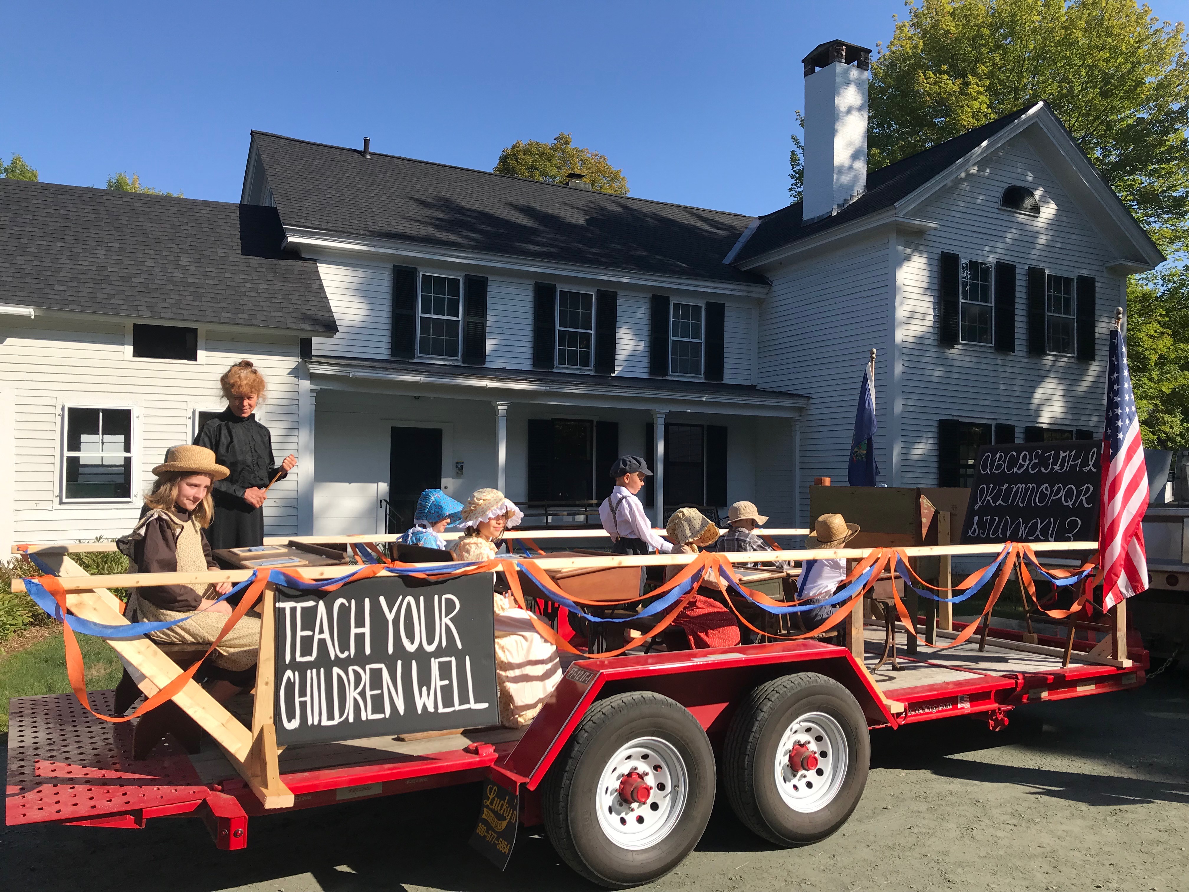 The Root Schoolhouse collaborated with the Norwich Historical Society and the Beaver Meadow Schoolhouse on a one-room schoolhouse parade float.
