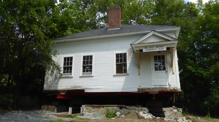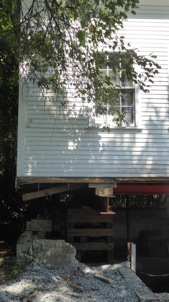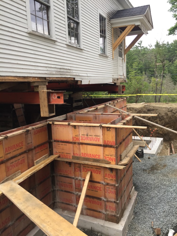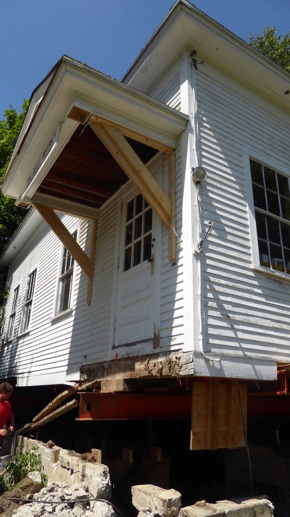 It was amazing to see the schoolhouse lifted up off the ground in order to remove the old crumbling foundation. With the drainage from the hillside finally addressed the new foundation will last another hundred years.