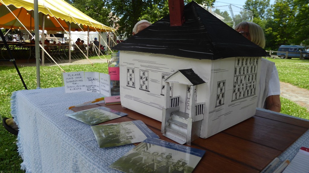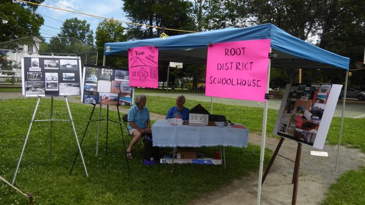 Jean and John Lawe, Suzie Wallis and Courtney Dobyns had a booth at the Norwich Fair displaying a model of the Root Schoolhouse.