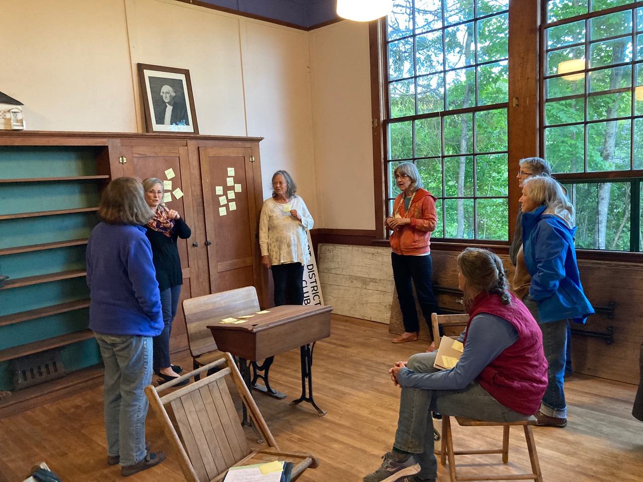 The Root Schoolhouse board met for the first time in person since Covid at the schoolhouse for a visioning session with neighbor, Holly Kania.